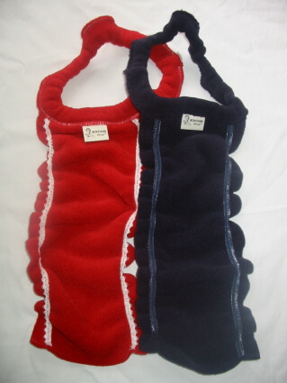 - Das lose Ende der Stoffbahn wird am Bauch eingeklemmt