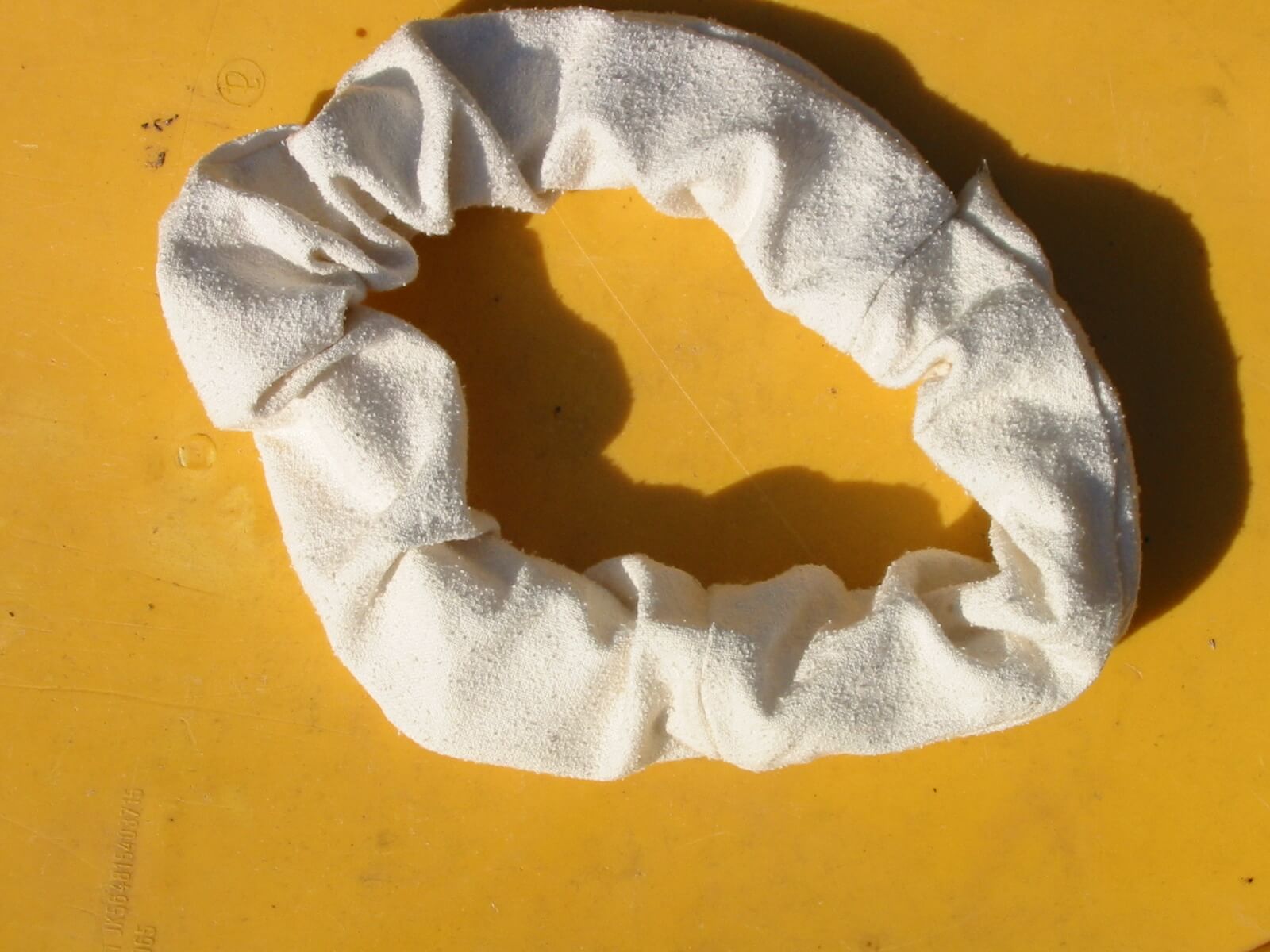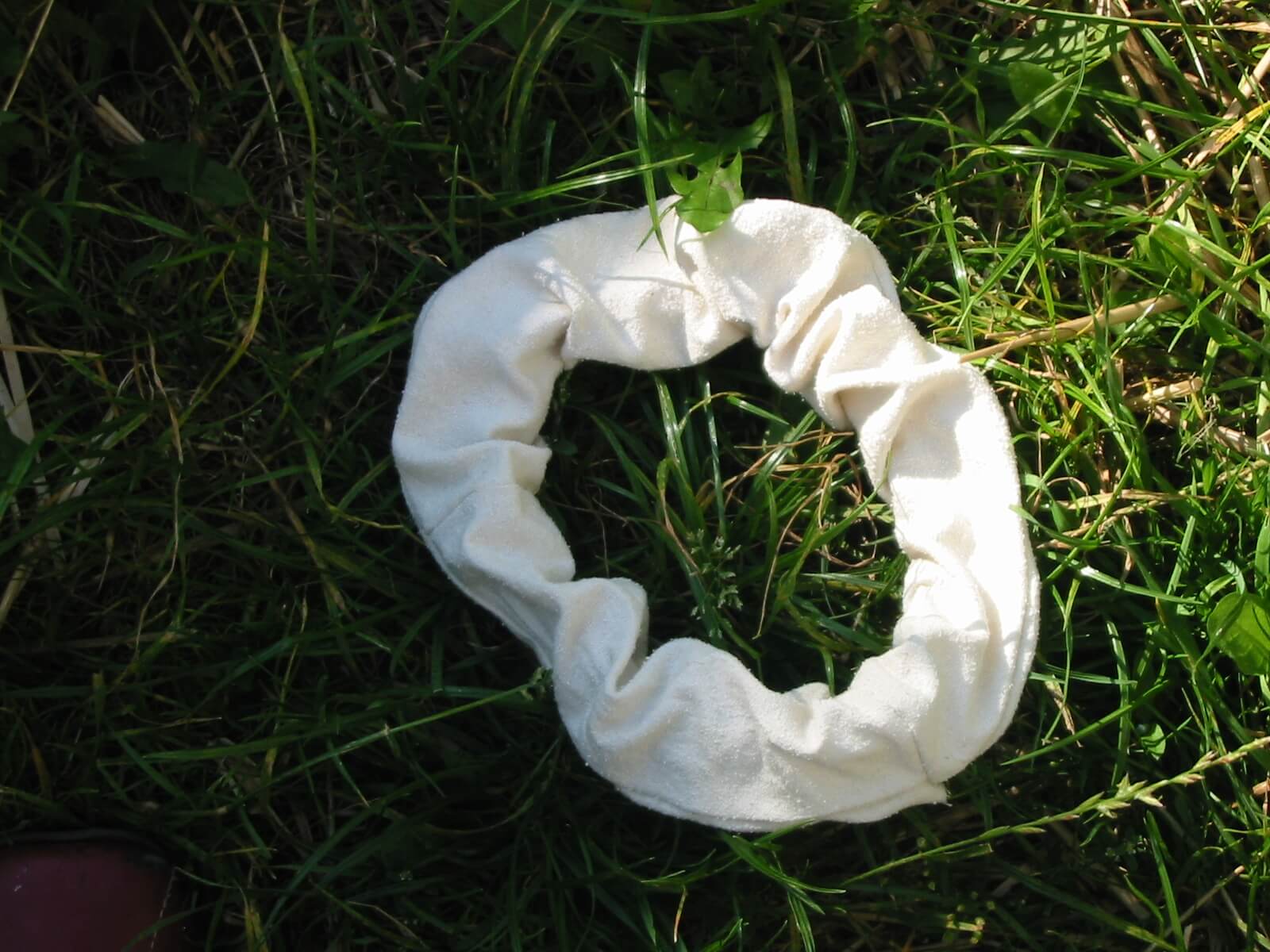 Es wird dem Baby um die Taille angezogen. Eine Einlage (gefalltete Mullwindel) wird vorne und hinten eingeklemmt: